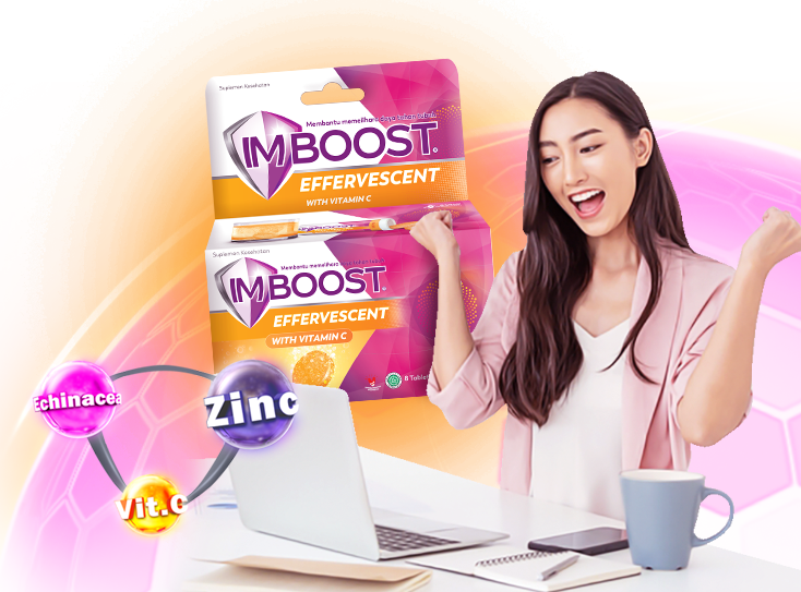 Imboost Tablet mengandung bahan alam echinacea dan zinc untuk menjaga daya tahan tubuh, sementara Imboost Effervescent berbentuk sediaan tablet yang perlu dilarutkan di dalam air. Mengandung tambahan Vitamin C untuk menjaga daya tahan tubuh.