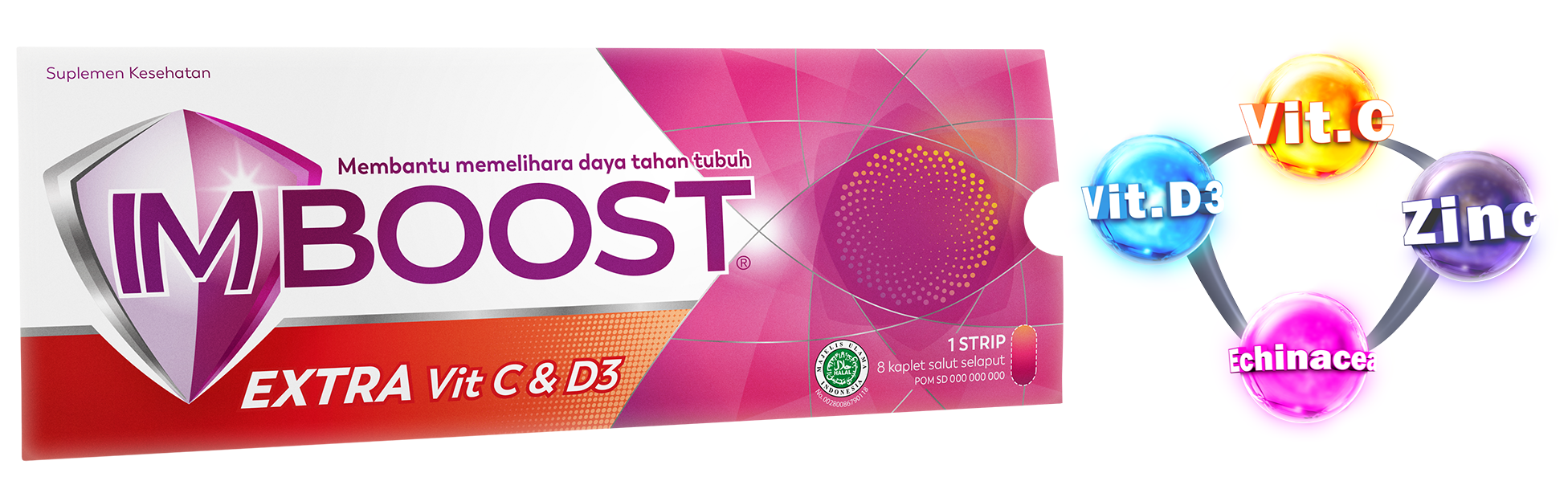 Imboost Extra Vitamin C & D3, yang dapat membantu dalam menjaga daya tahan tubuh agar siap menghadapi situasi apa pun, dan berperan sebagai Immunomodulator di dalam tubuh!